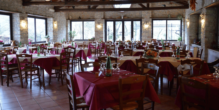 Trattoria il Vigneto Colle di Tora: cucina tipica casareccia con prodotti locali - pasta fatta a mano, carne alla brace, pane cotto al forno a legna, verdure di nostra coltivazione.